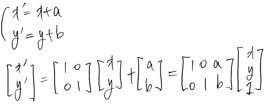 입력 영상의 모든 좌표를 x방향으로 a만큼 y방향으로 b만큼 이동하는 변환