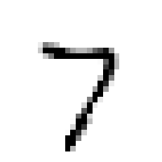 knn_clf.fit(X_train_mod, y_train_mod) clean_digit=knn_clf.predict([X_test_mod[some_index]]) plot_digit(clean_digit)