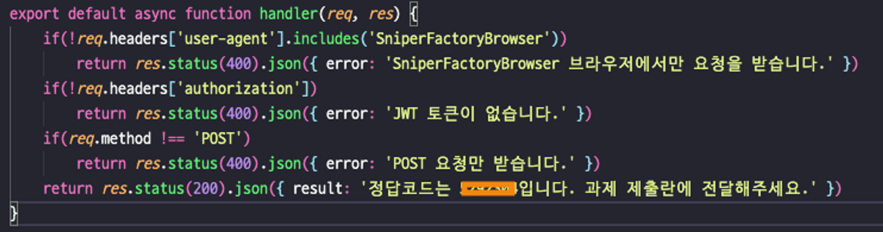 Quiz. 다음은 해당 자바스크립트로 작성된 백엔드에서 동작하는 코드이다. 빈칸에 들어갈 정답 코드를 제출하세요.