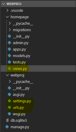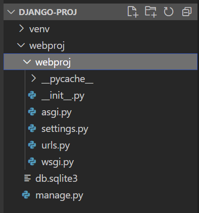 -__init__.py: 'webproj'디렉토리가 파이썬 모듈로써 인식되게 하는 파일
