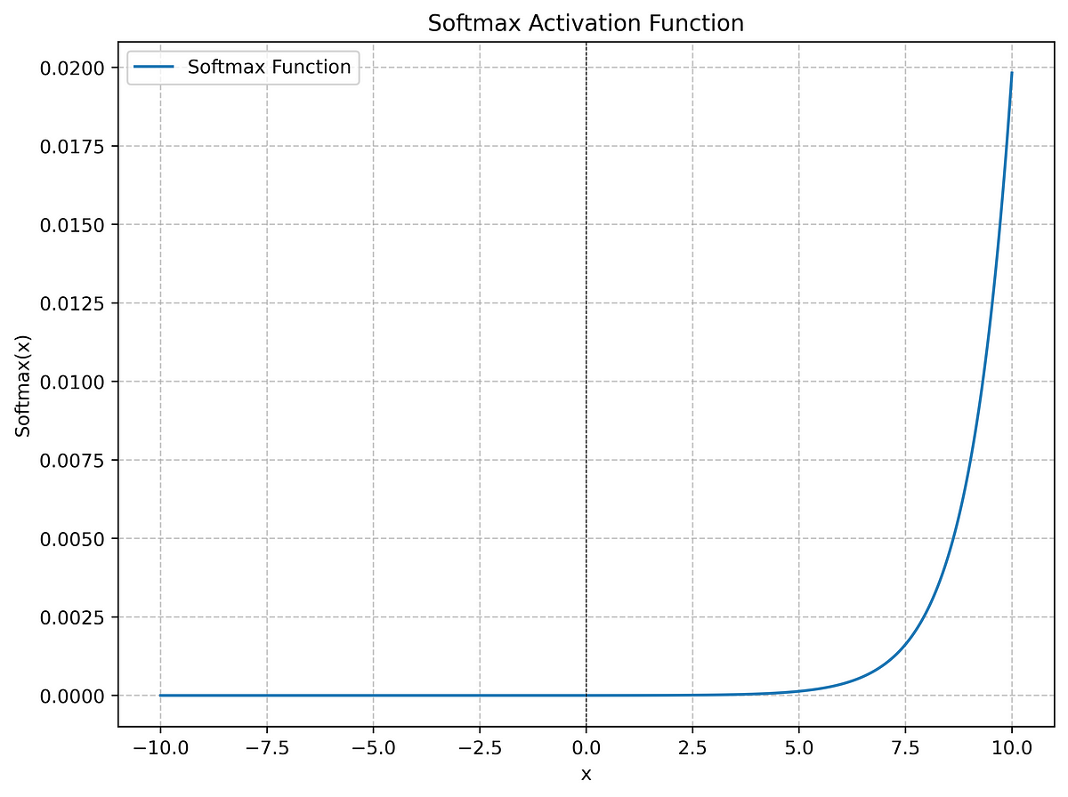 출력 범위 : 0~1사이, 모든 출력의 합은 1 / 다중 클래스 분류 문제에서 출력층의 활성화 함수로 사용되며, 각 클래스에 속할 확률 제공 -