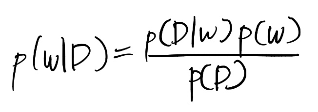 p(wD)는 D를 관찰하고 난 뒤의 w에 대한 불확실성을 표현 사후확률(posterior)은 우도(likelihood)*사전확률(prior)에 비례