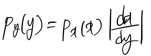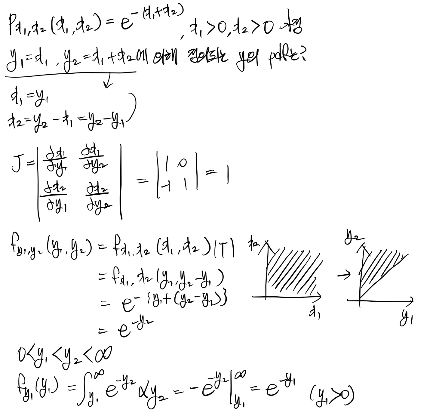 y=g(x)가 일대일변환인 경우(x=w(y)로 유일한 해를 가질때), y의 결합확률밀도함수(joint pdf)는