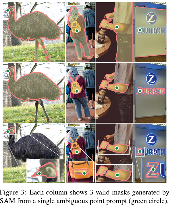 =>promptable segmentation task는 프롬프트가 주어지면 "valid" mask를 반환하는 것(모호한 프롬프트에 대해서 언어 모델은 일관적인 출력을 할 것을 기대하는 것과 유사)