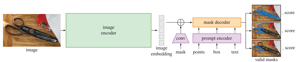 SAM은 image encoder, prompt encoder, mask decoder 3가지로 이루어짐