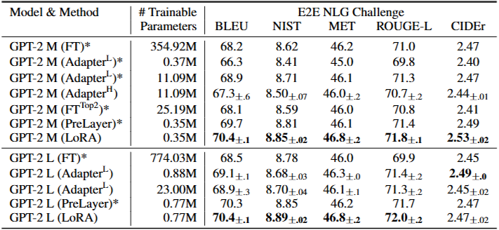 - LoRA : 기존 가중치+rank decomposition matrics 추가