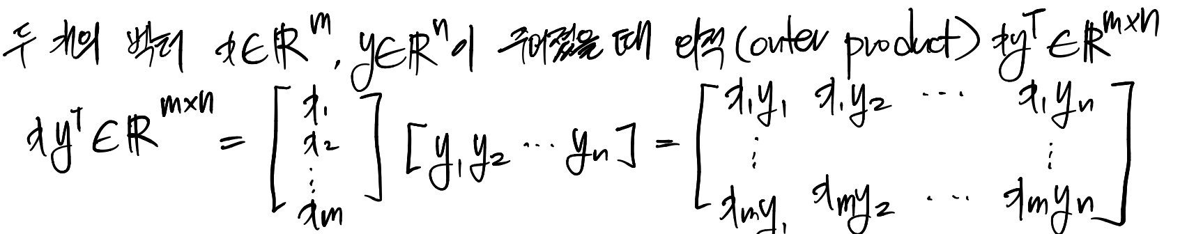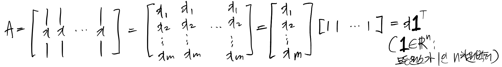 아래 행렬 A는 모든 열들이 동일한 벡터 x를 가지고 있음 외적을 이용하면 간편하게 나타낼 수 있다