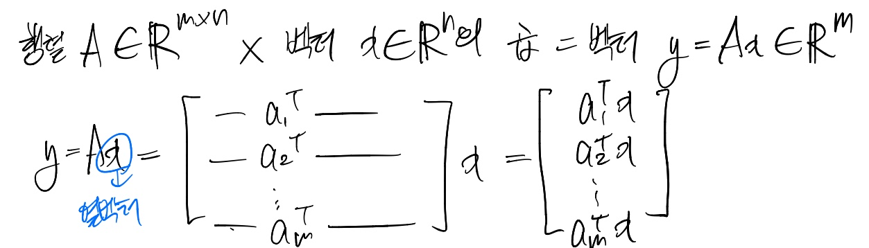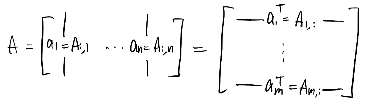 열벡터를 오른쪽에 곱하고 A가 행의 형태로 표현