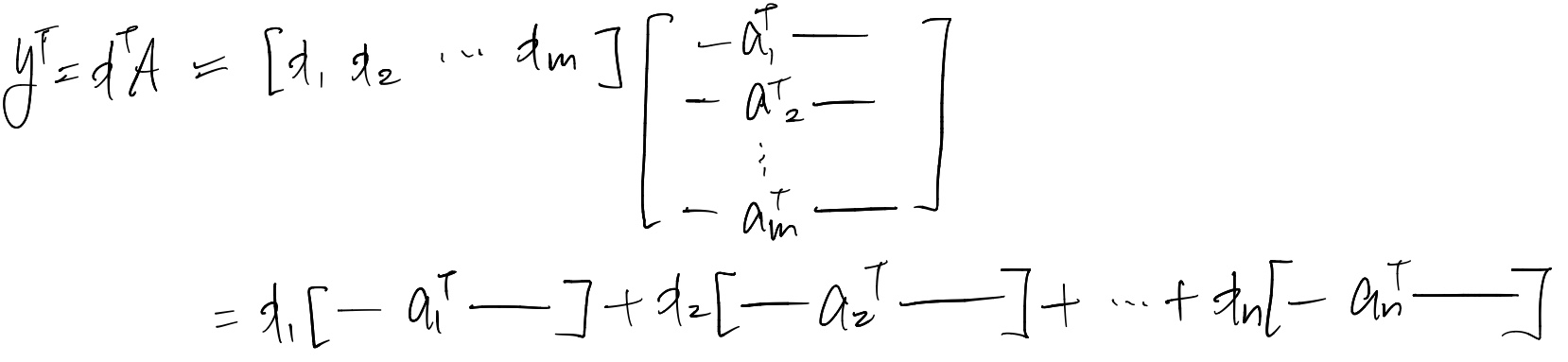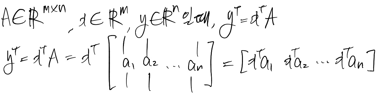 행벡터를 왼쪽에 곱하고 A가 행의 형태로 표현