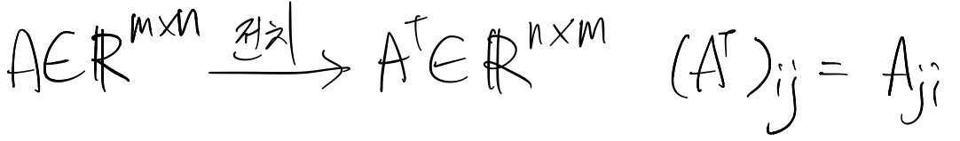 - 정방행렬+정방행렬의 전치행렬=대칭