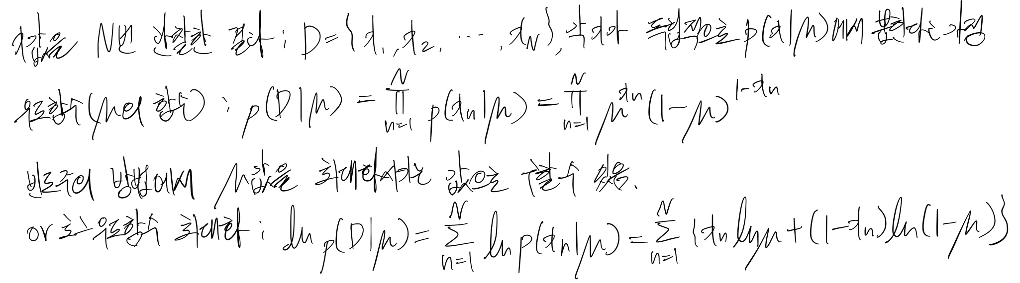 x값을 N번 관찰한 결과(D)가 주어졌을때, 우도함수는 아래와 같음