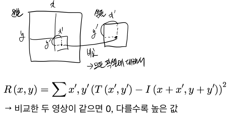 - TM_SQDIFF : 제곱차 매칭 방법≒MSE