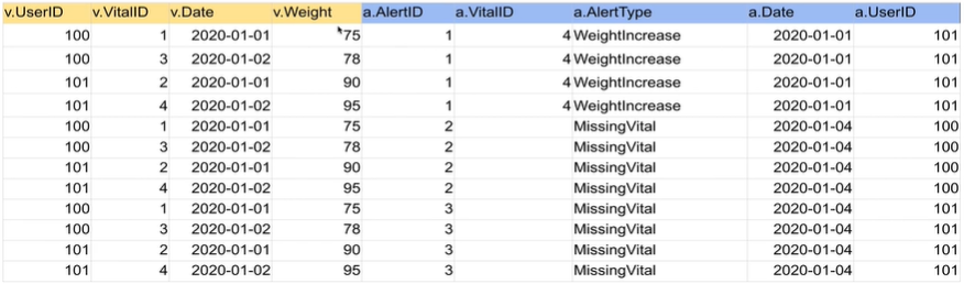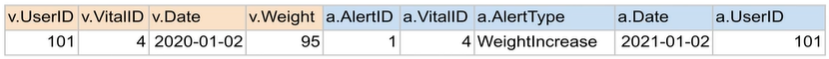 SELECT * FROM raw_data.Vital v JOIN raw_data.Alert a ON v.vitalID=a.vitalID;