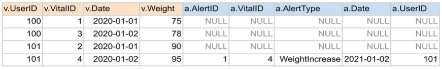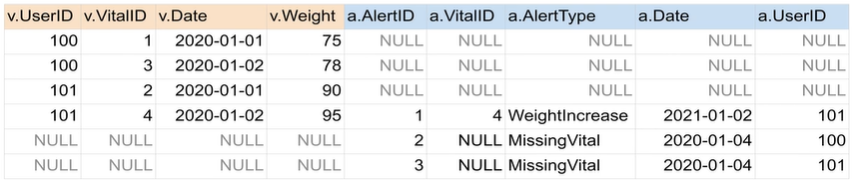 SELECT * FROM raw_data.Vital v LEFT JOIN raw_data.Alert a ON v.vitalID=a.vitalID;