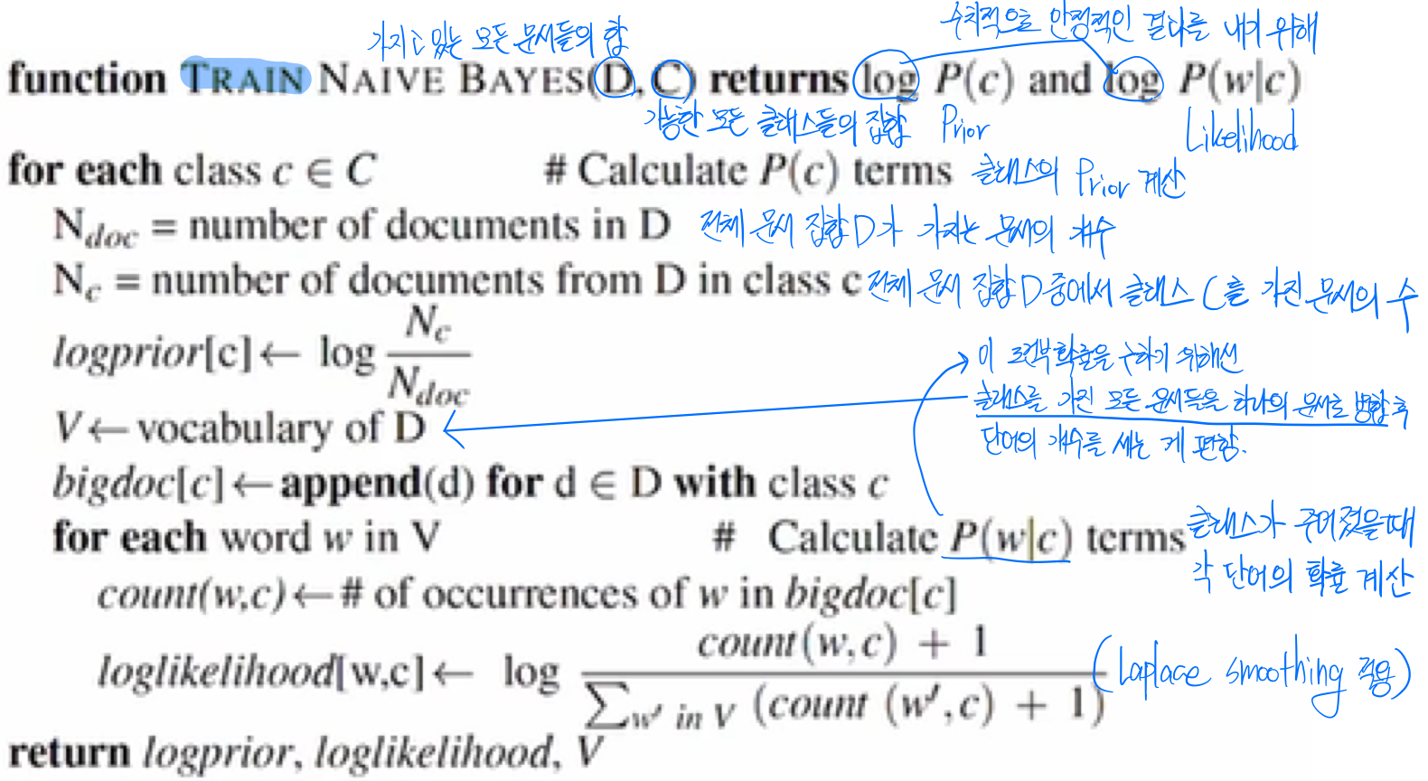 - input : d(document), C(fixed set of classes)={C1, C2, ..., Cj}, m(문서를 라벨링한 훈련세트)=(d1, C1), ..., (dm, Cm)
