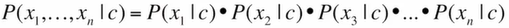 조건부독립과정 수식 ->클래스 c가 주어졌을 때 n개의 속성들이 주어질 확률은 분해가 된다