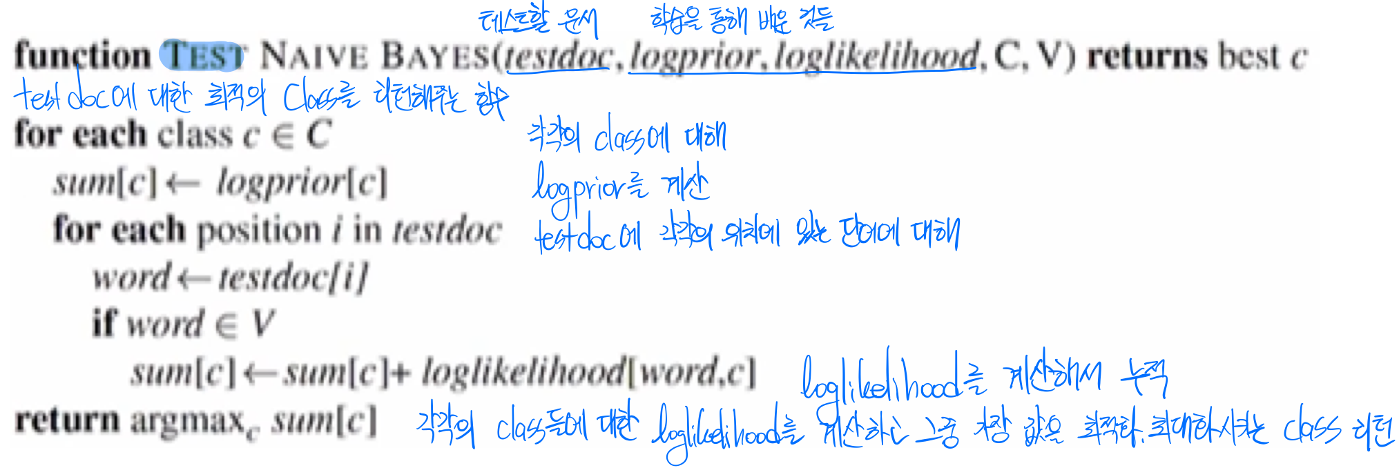- input : d(document), C(fixed set of classes)={C1, C2, ..., Cj}