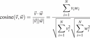 값이 작으면 두 벡터 사이의 각도가 큼->유사 ↓