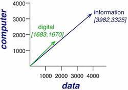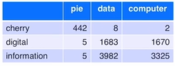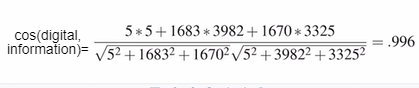 벡터 유사도 계산 예제 , 'digital'과 'information'의 값이 큼->두 단어의 유사도가 큰 것을 알 수 있음 1. TF-IDF