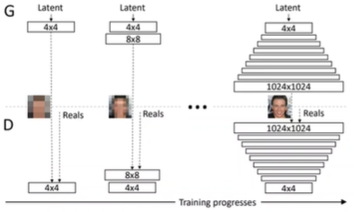 처음부터 GAN이 high resolution을 만들기 힘드니까 점진적으로 발전할 수 있도록 downsampling된 영상을 보여주면서 점점 높은 픽셀로